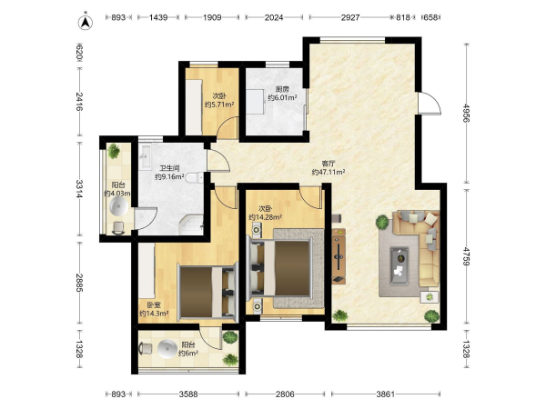房屋戶型: 3 室2廳 1 廚1衛(wèi)