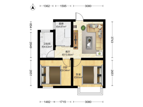房屋戶型: 2 室2廳 1 廚1衛(wèi)
