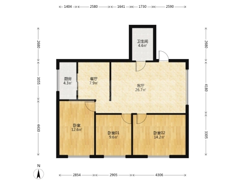 房屋戶型: 3 室2廳 2 廚2衛(wèi)