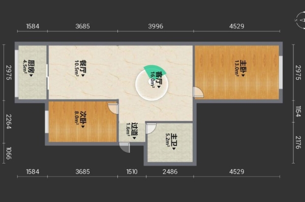 房屋戶型: 2 室1廳 1 廚1衛(wèi)
