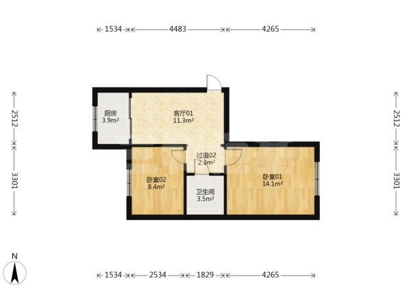 房屋戶型: 2 室1廳 1 廚1衛(wèi)