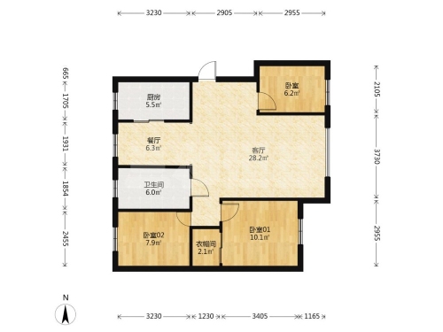 房屋戶型: 3 室2廳 1 廚1衛(wèi)