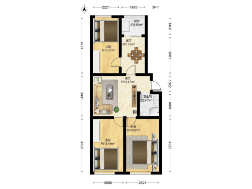房屋戶型: 3 室2廳 1 廚1衛(wèi)