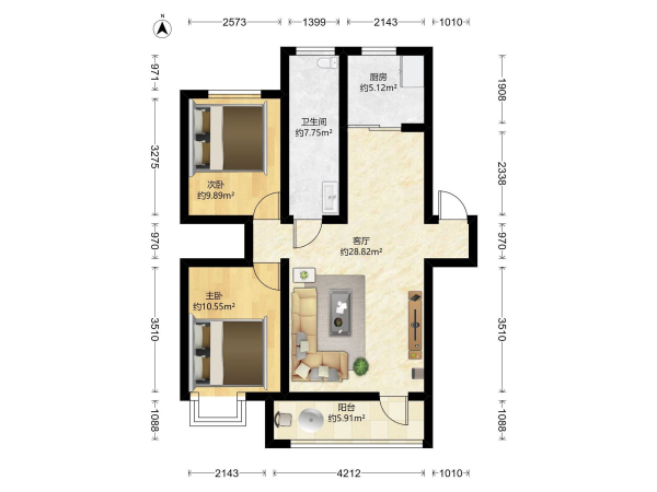 建筑面積:88.74㎡