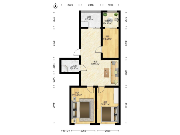 房屋戶型: 3 室2廳 1 廚1衛(wèi)